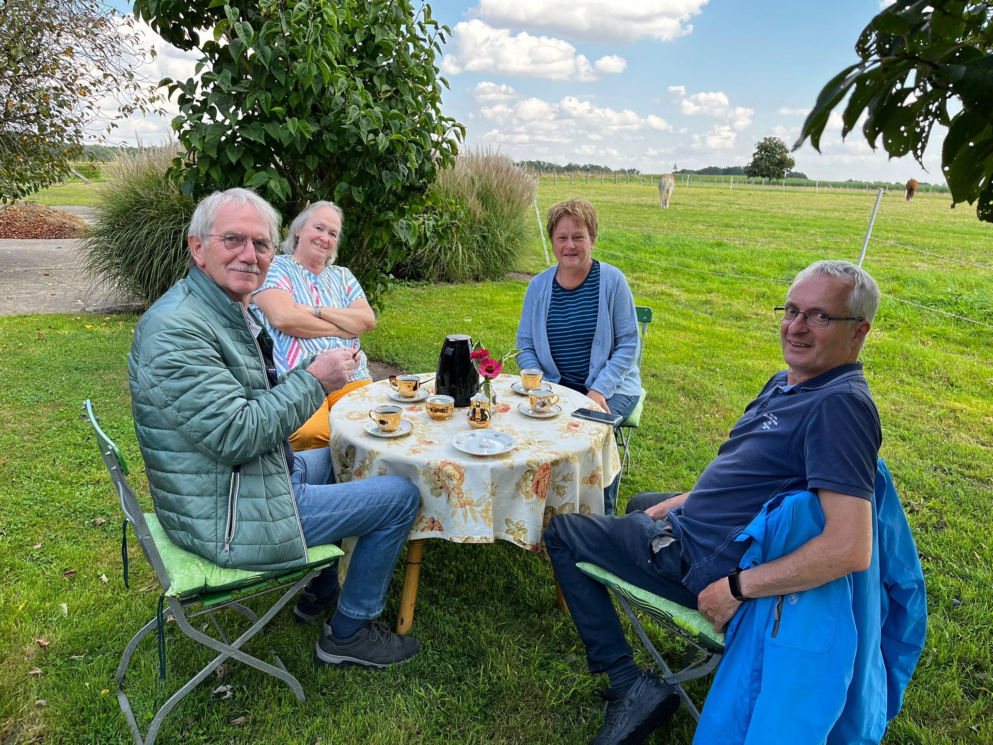 Im „Dielen Kaffee“ wurden wir schon erwartet. Mit selbstgebackenem Kuchen und Kaffee fand unsere Wochenendfahrt hier seinen Ausklang. Ein Kaffee der besonderen Art, ein altes Bauernhaus mit Diele und Kuhstall. Alles nett hergerichtet mit alten Gerätschaften, Gegenständen und Möbeln. Die Hausherrin, die Eigentümerin des Bauerhauses, hatte zu allem nette Gegebenheiten und Geschichten zu erzählen. Ein gelungener Abschluss bei strahlendem Sonnenschein.