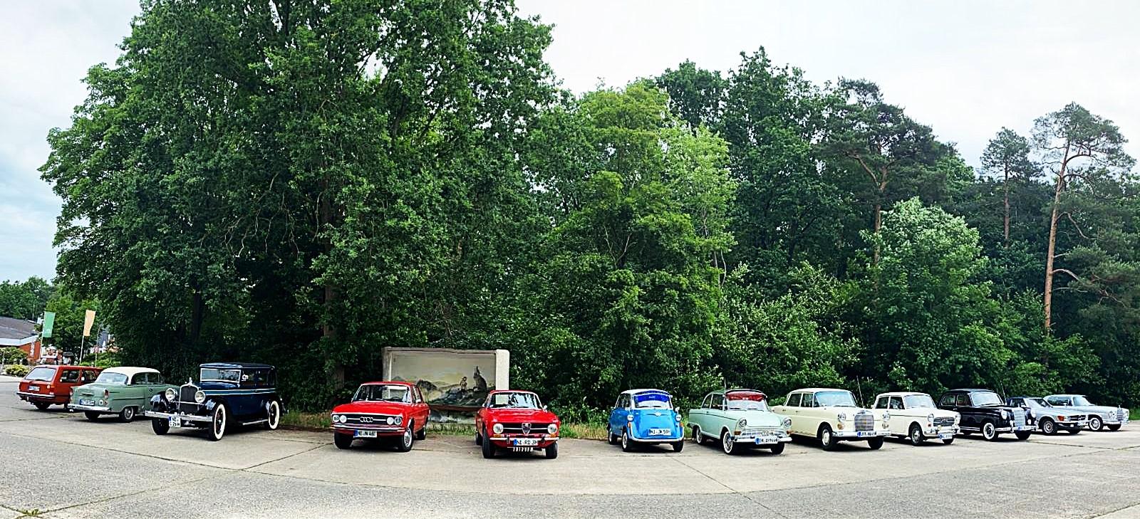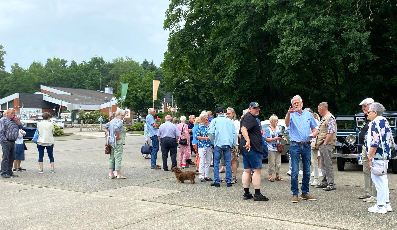 Kurz nach 9 Uhr hieß es dann, alle zu den Fahrzeugen, einsteigen und los ging die Fahrt. 23 schicke, auf Hochglanz polierte Oldtimer unterschiedlicher Fabrikate, Größe und Alter setzten sich in Richtung Hoya in Bewegung. In Buchholz ging es rechts ab, Richtung Drakenburg, über‘s Wehr, Richtung Nienburg. Am Kreisel in Drakenburg / Holtorf 3. Ausfahrt Richtung Eystrup. In Rohrsen rechts ab, Richtung Anderten. Dann führte uns die Strecke vorbei am Hämelsee, durch viel Landschaft mit vielen kleinen Umwegen über Diensthop nach Dörverden zum Wolfcenter. Hier war unser erster Halt. Wir hatten ca. 1,5 Stunden Aufenthalt. Wer wollte, konnte das Wolfgehege besichtigen. Den anderen bot sich die Möglichkeit, im Restaurant oder an der frischen Luft einen gemütlichen Plausch mit seinen Mitstreitern zu halten.