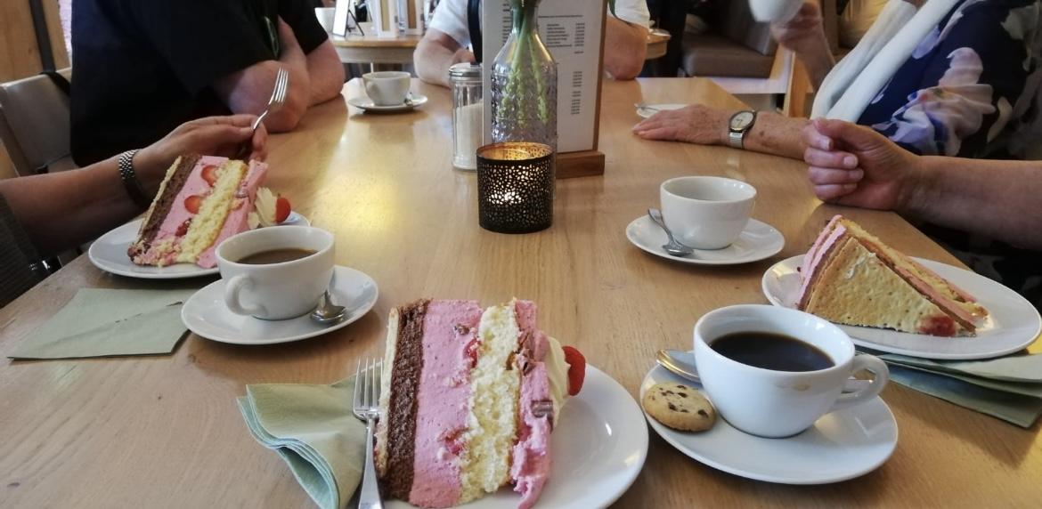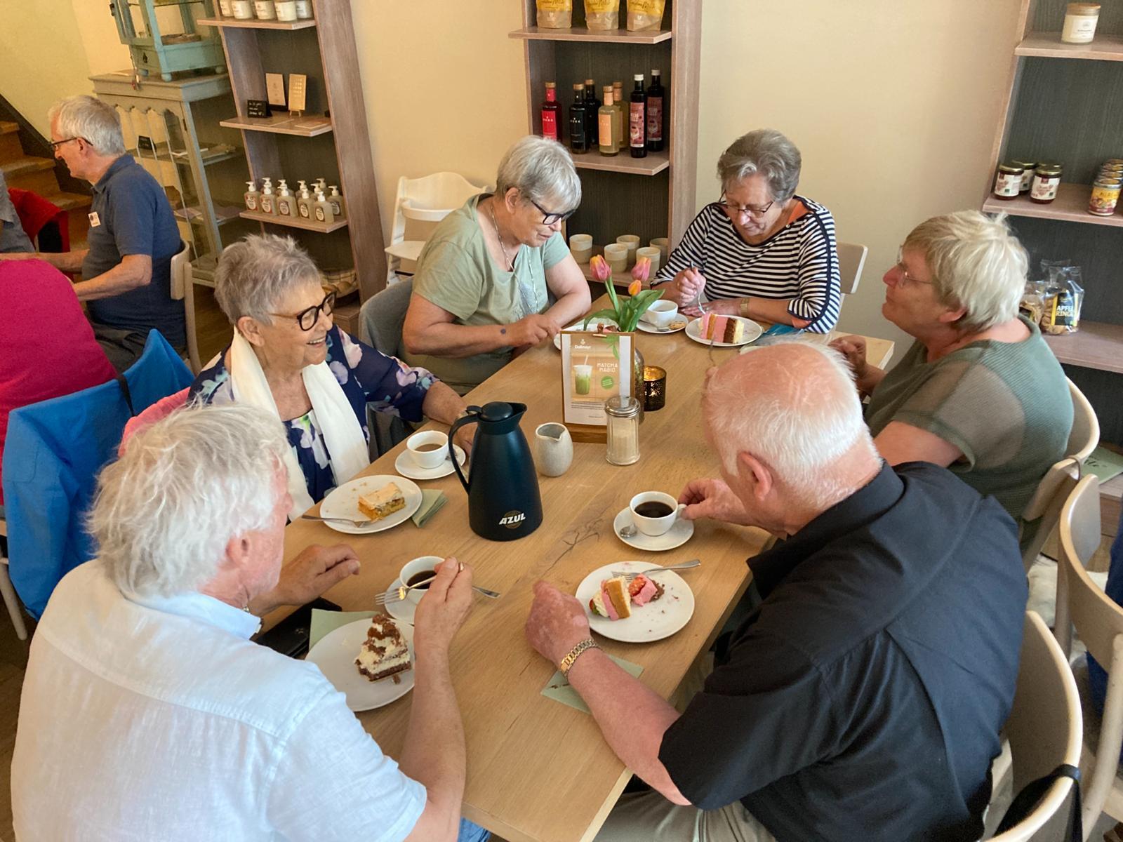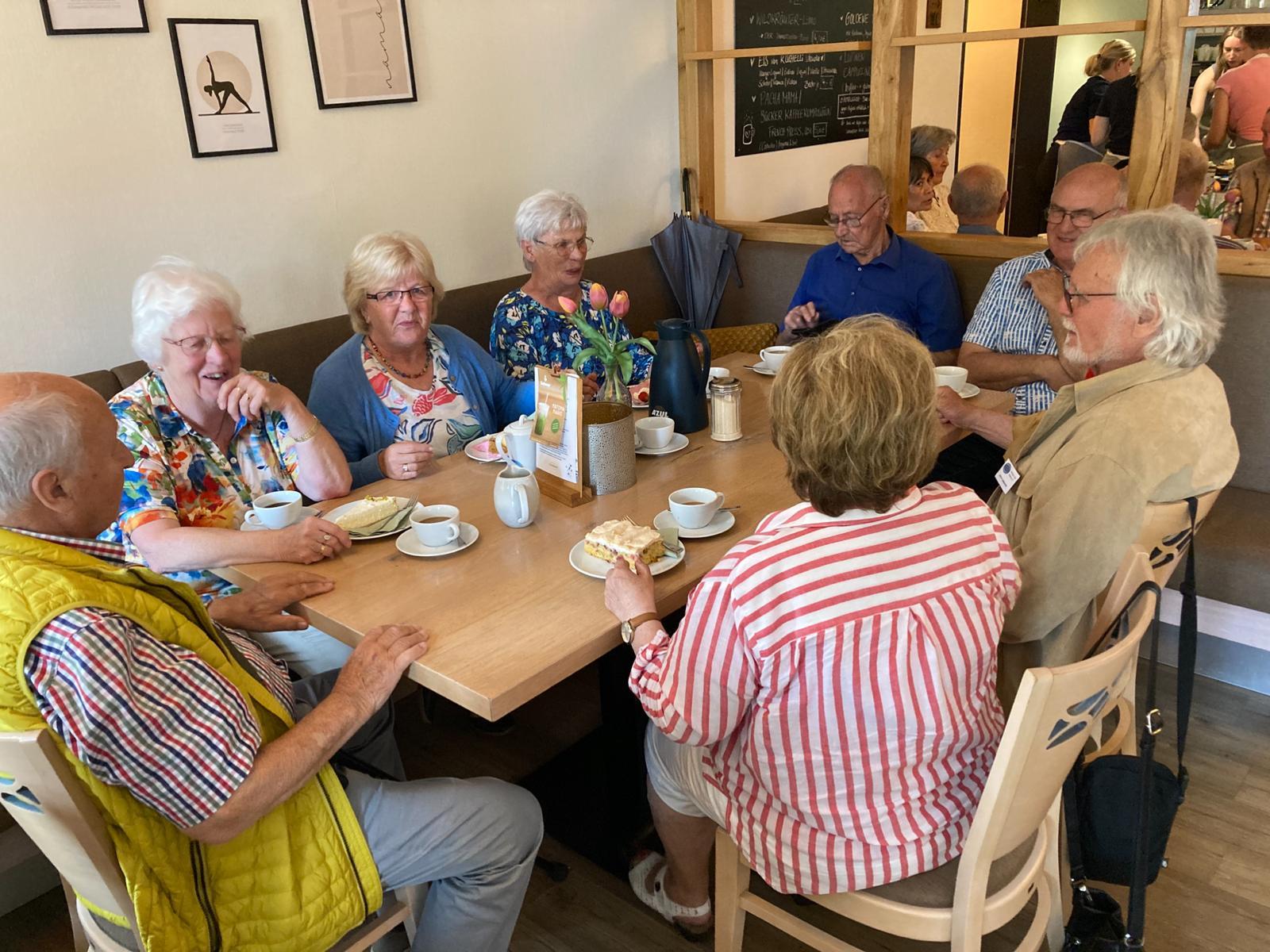 Um 13.45 Uhr ging die Fahrt weiter. Auf zur letzten Etappe. Wohin? Natürlich zum Kaffeetrinken. Aber, wie heißt es so schön – Nachtisch und Kuchen geht immer. Auf Nebenstrecken, mit möglichst wenig Verkehr, so dass die Kolonne nicht, oder nur wenig auseinandergerissen wurde, ging es Richtung Hassel, Hoya, Bücken nach Warpe zu Okelmann’s. Auch hier war man auf unser Kommen mit reichlich Kaffee und sehr leckeren Torten vorbereitet.
