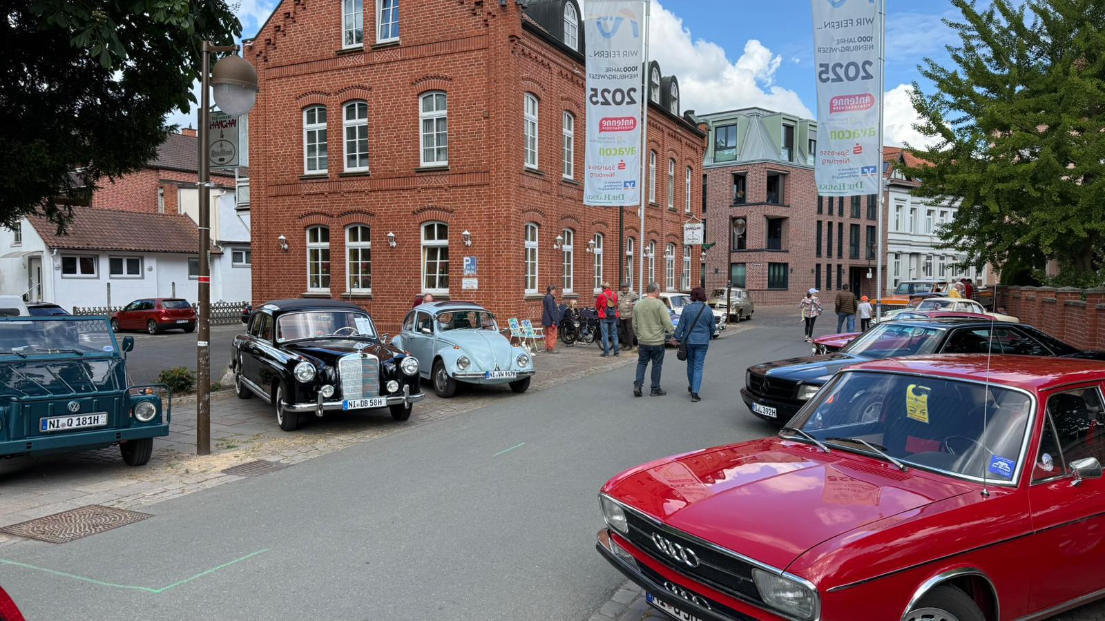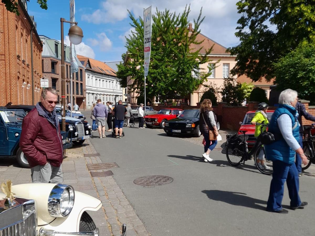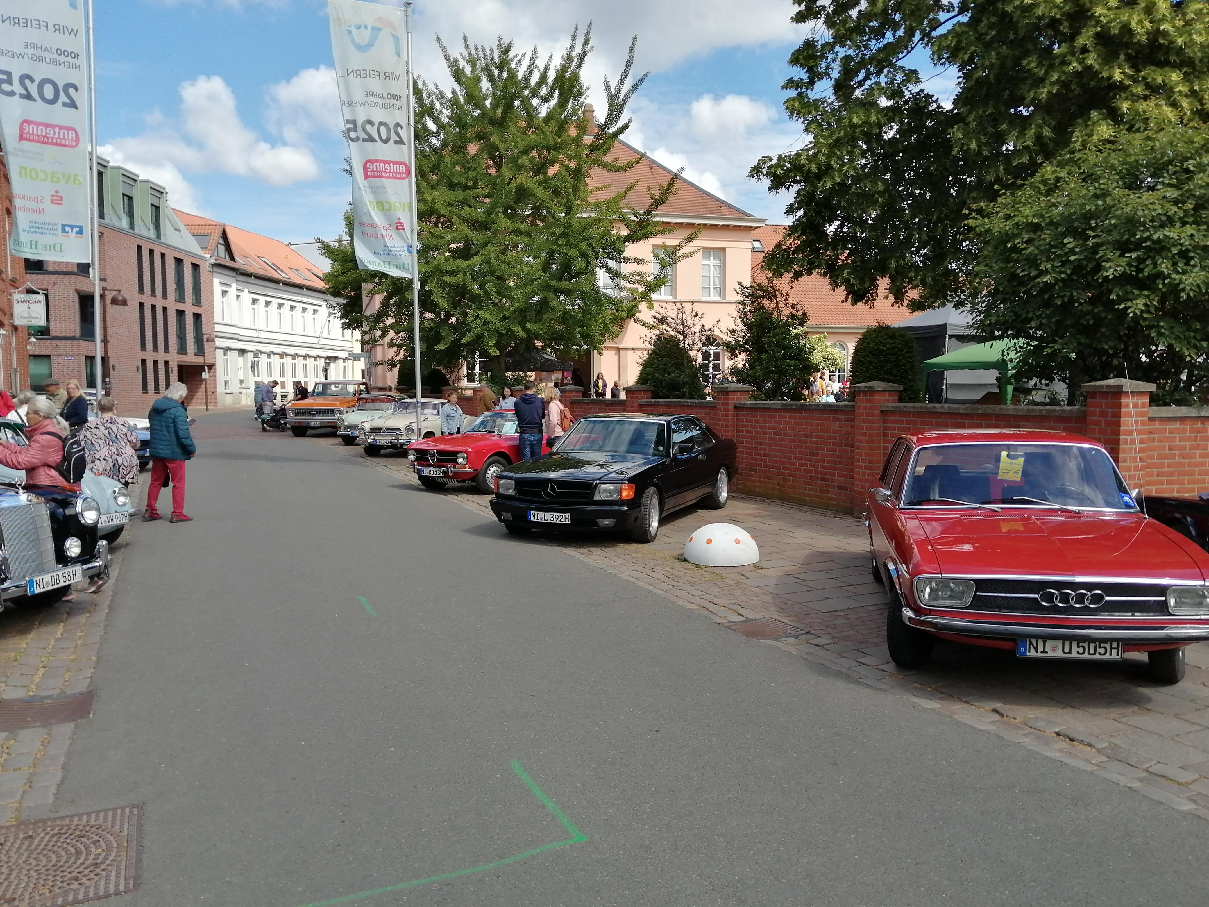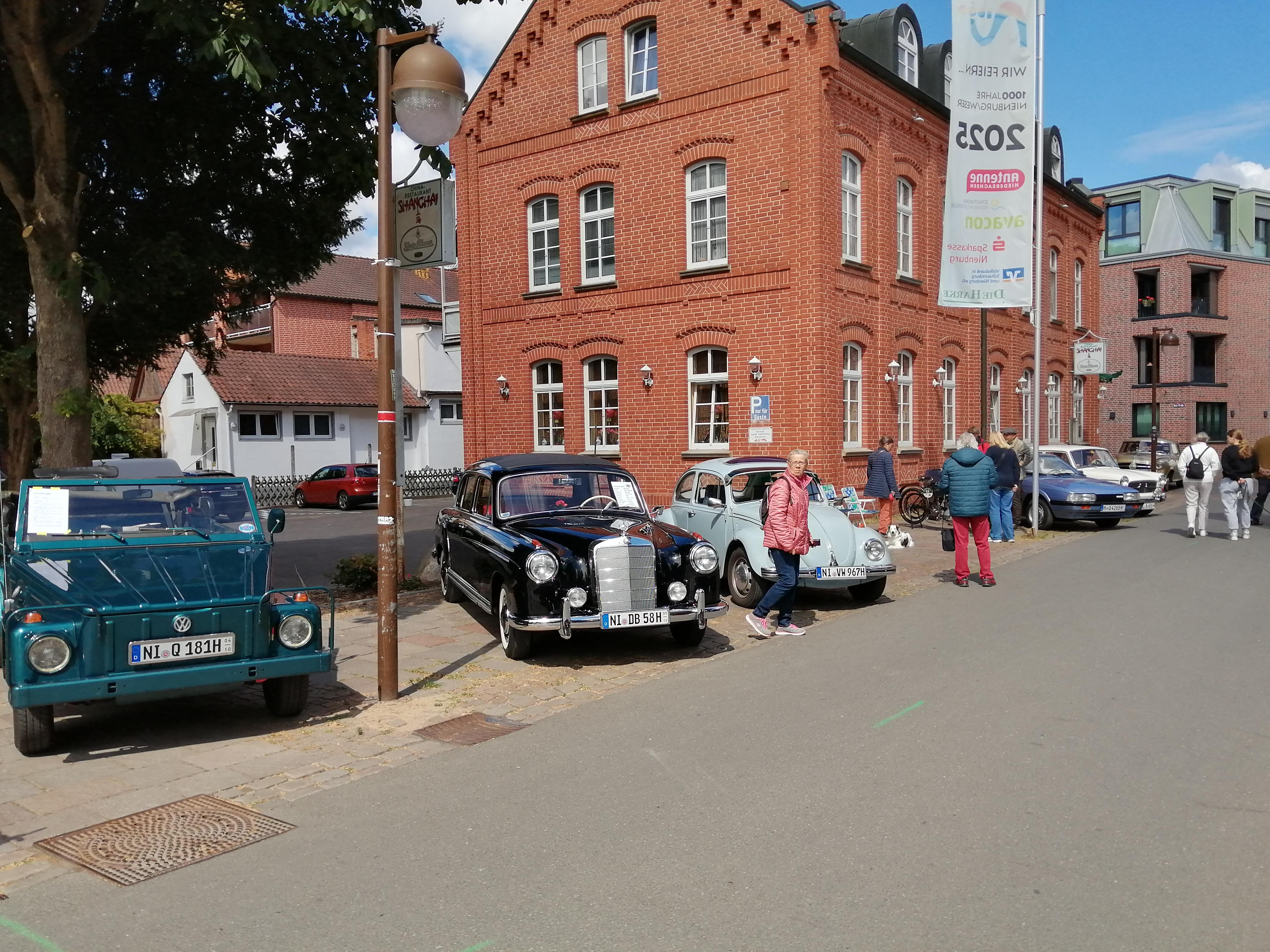 Am 18. Mai 2025 fand in Nienburg/Weser das 15. Spargelfest statt. Dazu waren wir, vom Oldtimerclub Nienburg von der Stadt Nienburg eingeladen worden. Treffpunkt war um 10.30 Uhr am Weserschlößchen in Nienburg. Nachdem insgesamt 15 Fahrzeuge eingetroffen waren, fuhren wir über die Neue Straße in die Leinstraße und parkten unsere Oldtimer links und rechts an dem Bürgersteig vor dem Quat-Faslem Haus.